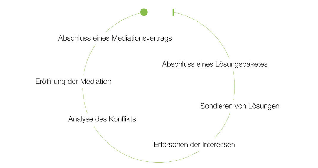 Im Gegensatz zu einem Richter oder Schlichter entscheide ich als Mediator nicht über den Konflikt der Parteien. Stattdessen moderiere und steuere ich als neutraler Dritter die vertraulich geführten Verhandlungen zwischen den Streitparteien. Dabei konzentriere ich mich insbesondere darauf, die Interessen der jeweiligen Partei herauszuarbeiten, wozu eine Trennung von Sach- und Beziehungsebene erforderlich ist. Dadurch ermögliche ich es den Konfliktparteien, eine den Interessen beider Seiten gerecht werdende Lösung zu entwickeln.